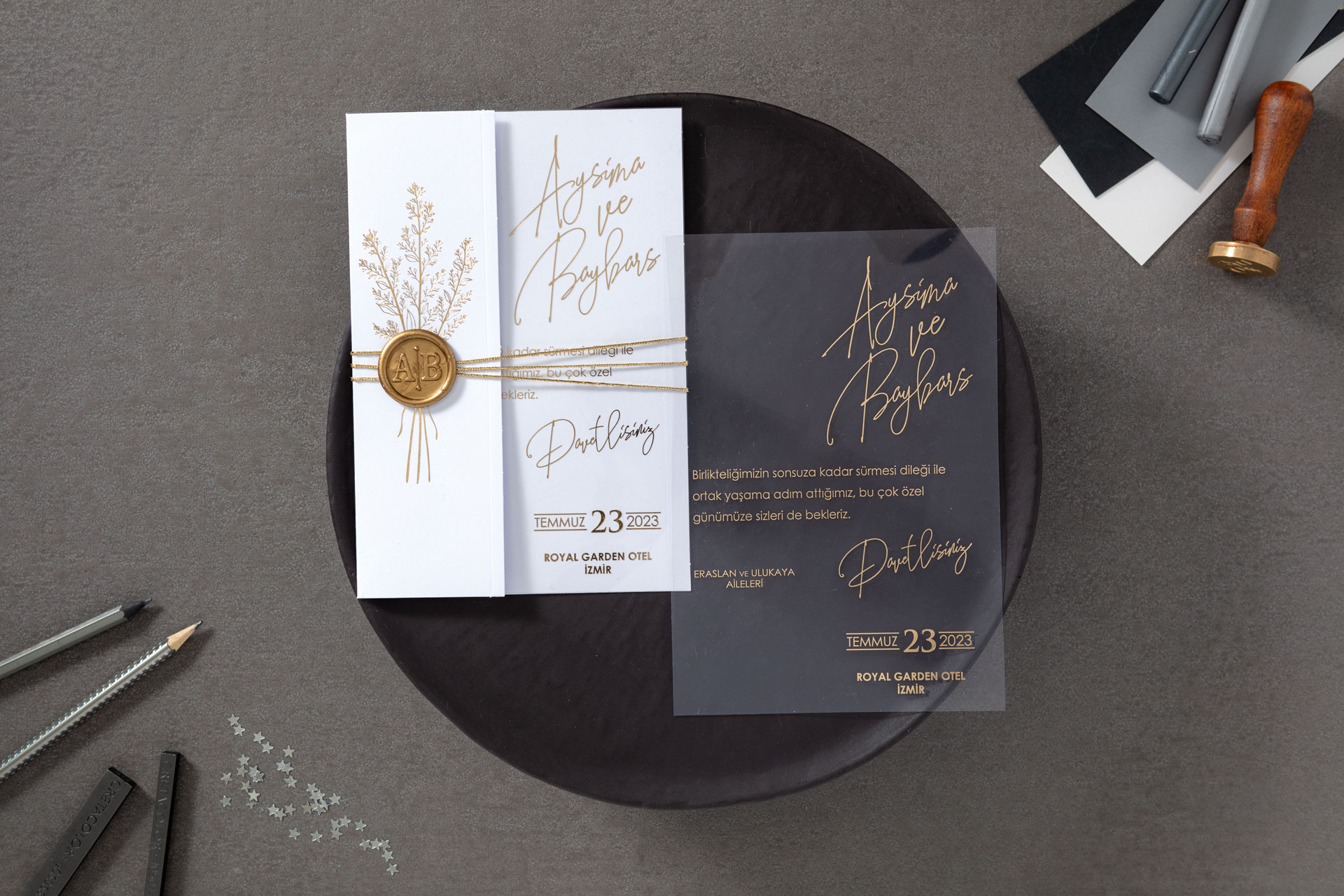 Davetiye ürün görselinde ve üzerinde varsa zarf, ip ve aksesuar fiyata dahildir.